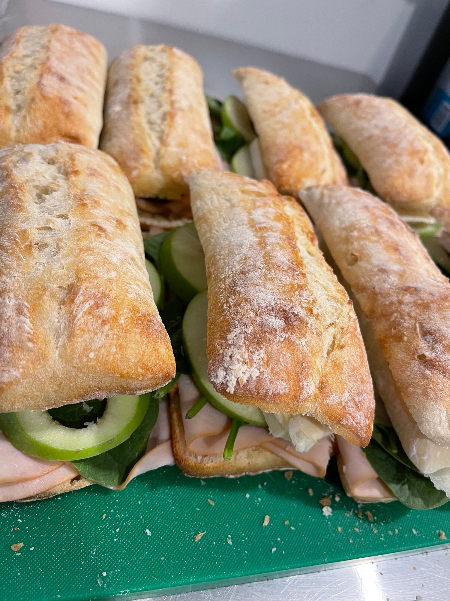 Choose from turkey, assorted, ham, meatball or tuna. Toppings include cheese, green olive, pickle, tomato, onion, lettuce, mayo, sub sauce and mustard.